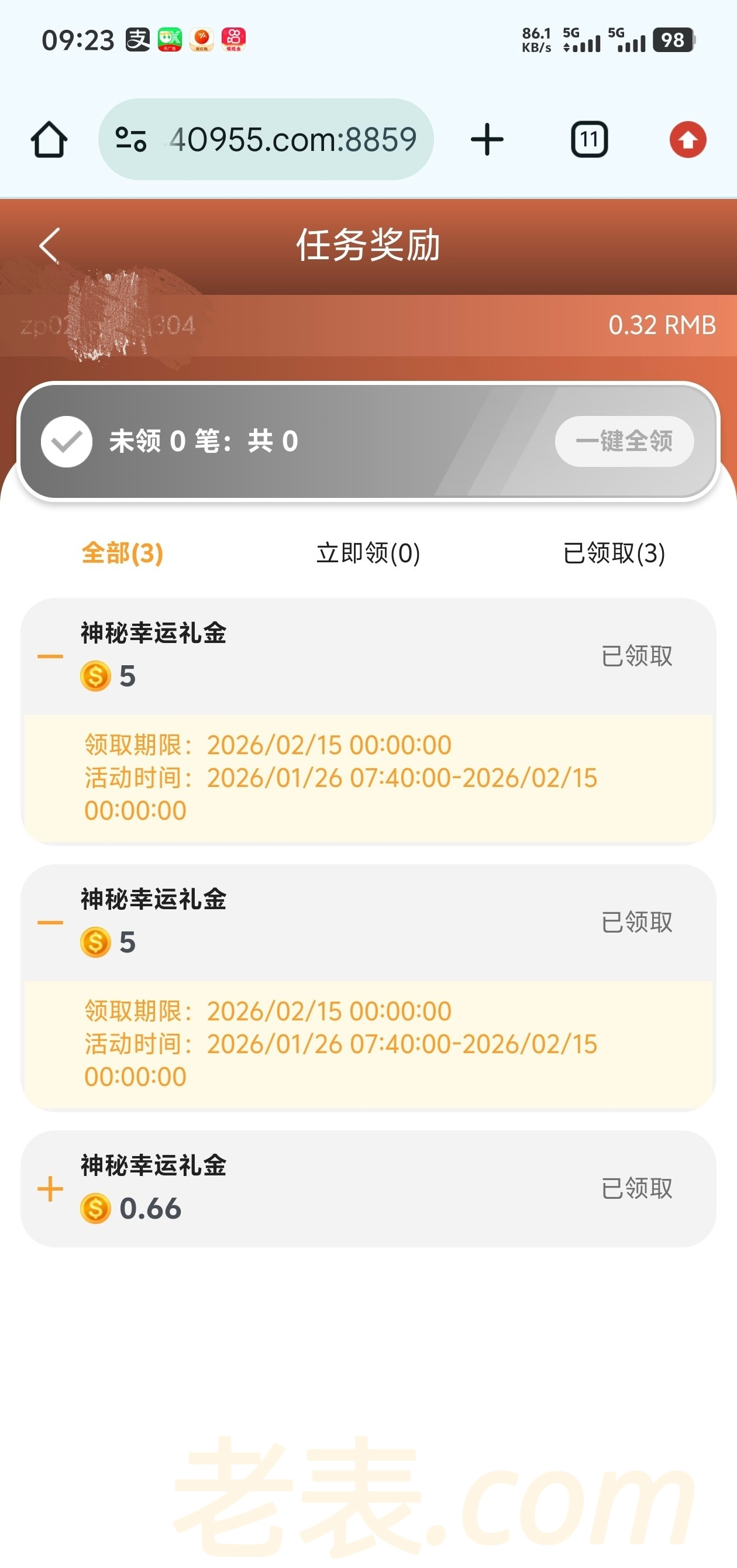 304.com 没充值 回馈了两个5