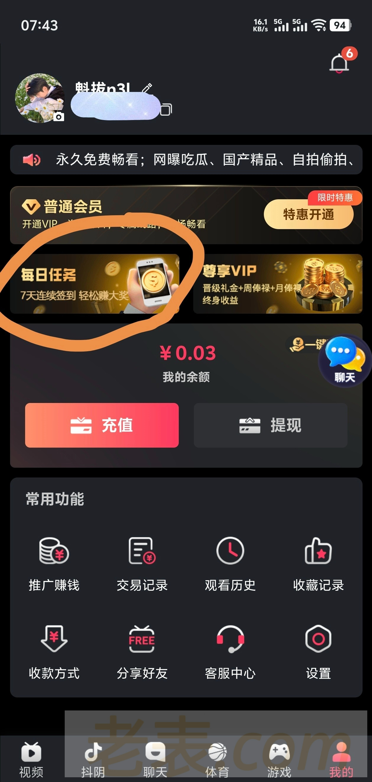 给兄弟们说一个台子 我已经白嫖过300了 下载注册好以后 点进去有个签到 每天都可以签到 不用充值 如果只签到不玩 7天下来能有30元左右 第8天又可以重新签到 反正我全程没充值一分钱 今天领了个3.88 麻将爆了100倍 前几天领了个7块 玩快三又出了100 前天小号累计签到7天存了30 又提了100 多号多撸
