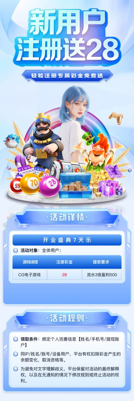 开业7天注册送28,注册绑定信息,规则看下面图片